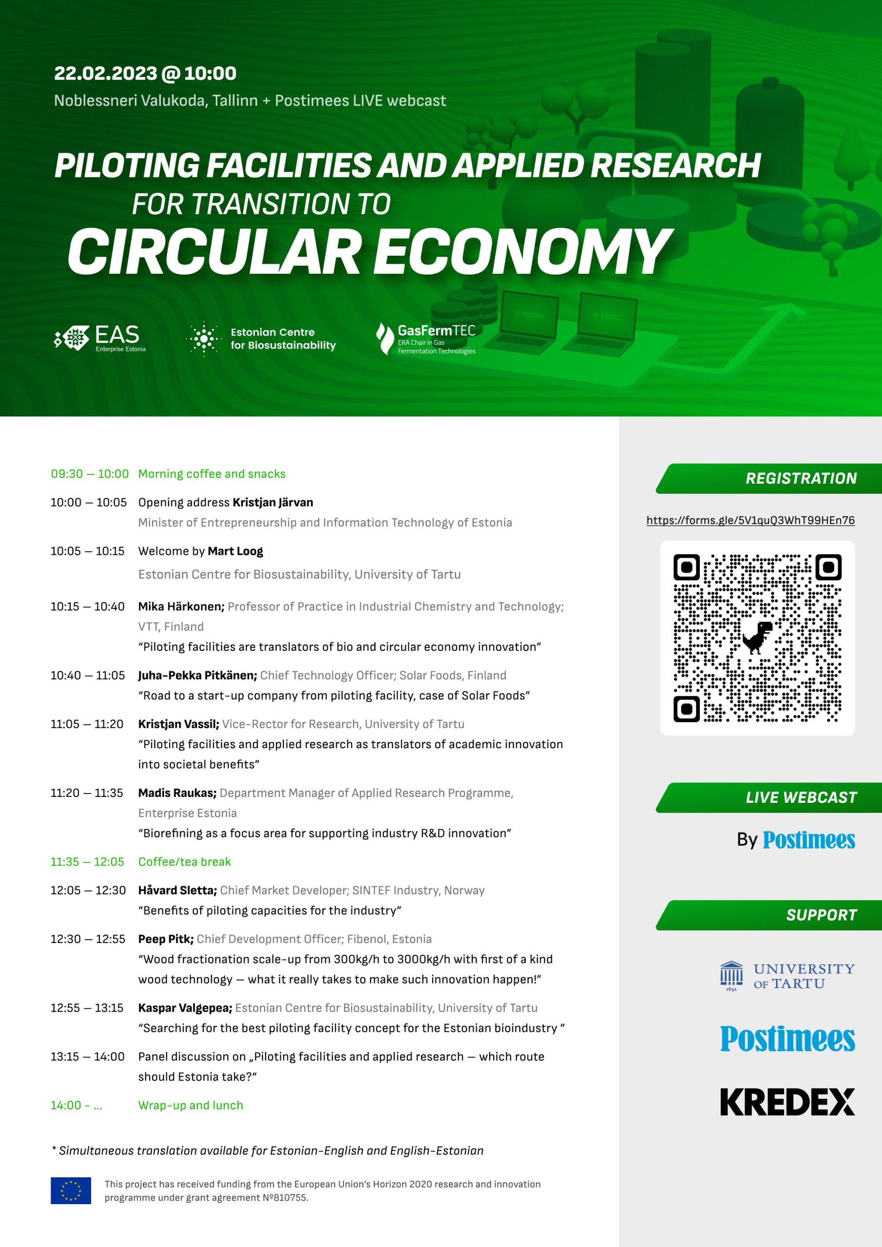 Estonian Centre of Biosustainability (ECB) and Enterprise Estonia (EAS) are organising the joint seminar “Piloting facilities and applied research for transition to circular economy” on the 22nd of February in Tallinn in Noblessner Valukoda. Please see program below and register to attend here ( https://forms.gle/5V1quQ3WhT99HEn76 ) by the 13th of February.